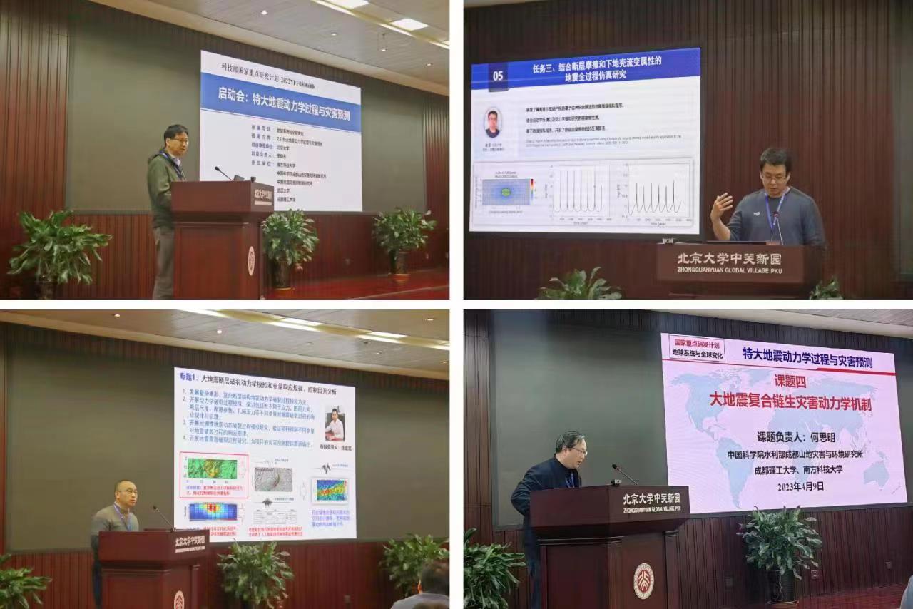2023年4月9日,“十四五”国家重点研发计划“地球系统与全球变化”重点专项“特大地震动力学过程与灾害预测”项目启动会暨实施方案论证会在北京大学顺利召开。北京大学讲席教授、项目负责人宋晓东主持会议。北京大学科学研究部张琰副部长、北京大学地球与空间科学学院宁杰远副院长代表承担单位,中国科学院大学石耀霖院士、南方科技大学陈晓非院士、中国地震局科技与国际合作司车时司长、中国地质大学(北京)徐锡伟教授等发表了讲话,强调党中央对于我国的大震风险、防震减灾高度重视,而地震预测问题是地震学问题中“皇冠上的明珠”,“特大地震动力学过程与灾害预测”项目正是“恰逢其时”。项目指导专家、会议邀请专家、项目及课题负责人,以及项目承担和参与单位北京大学、南方科技大学、中国科学院水利部成都山地所、中国地震局地球物理研究所、成都理工大学、武汉大学的主要骨干等40余人参加了本次线上线下会议。