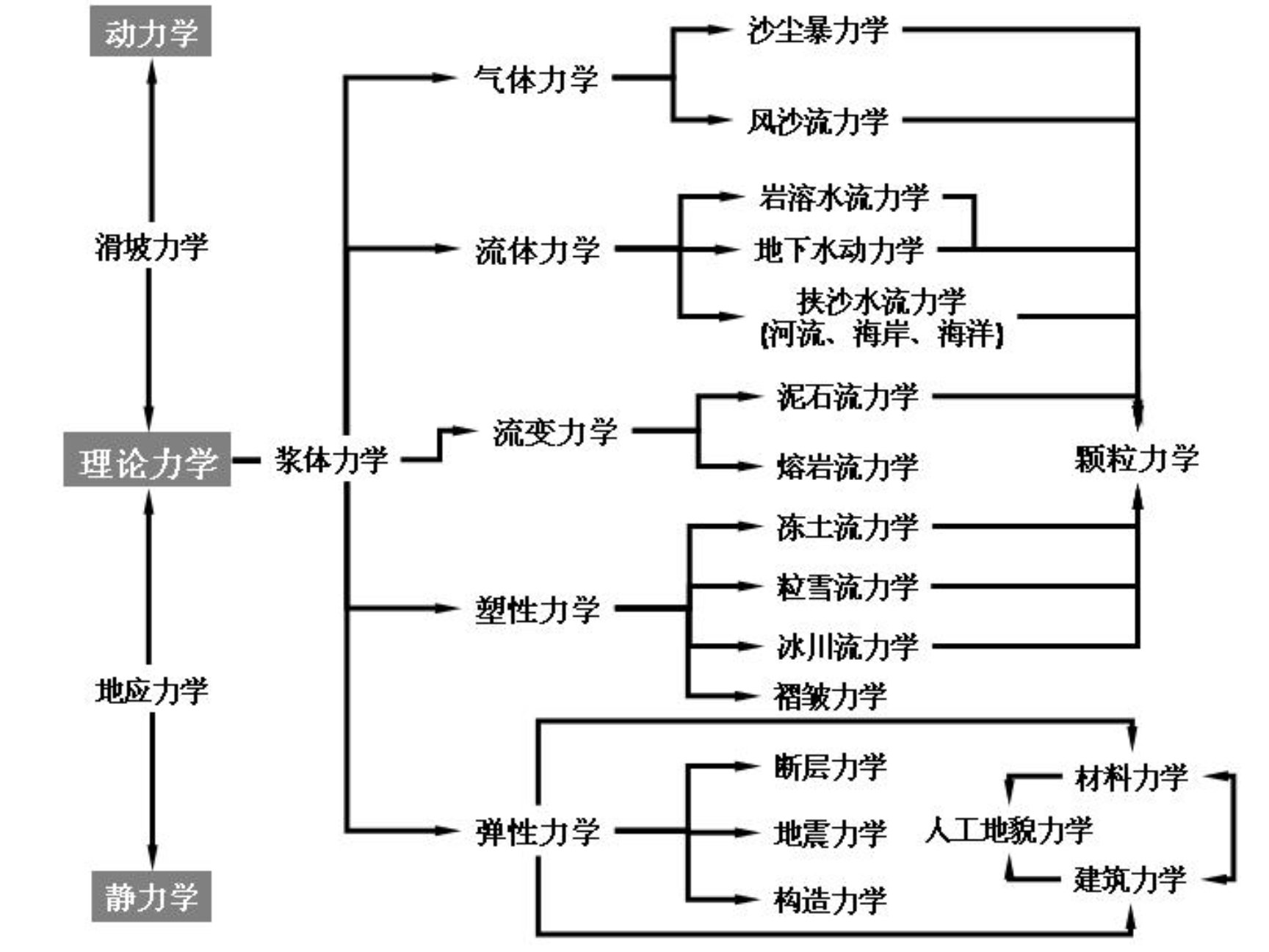 于是,我们一方面梳理力学的门类,一方面梳理地貌的现象,从地球的内动力、外动力作用,相应的形成各类地貌现象,做了一一的对应。王仁先生提出的地球动力学,塑性力学等,在我编写的“动力地貌学概论”中都有应用,见图。