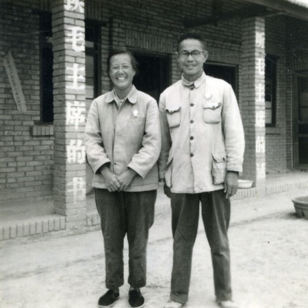 王仁夫妇摄于鄱阳湖畔幼儿园前(1970年秋)