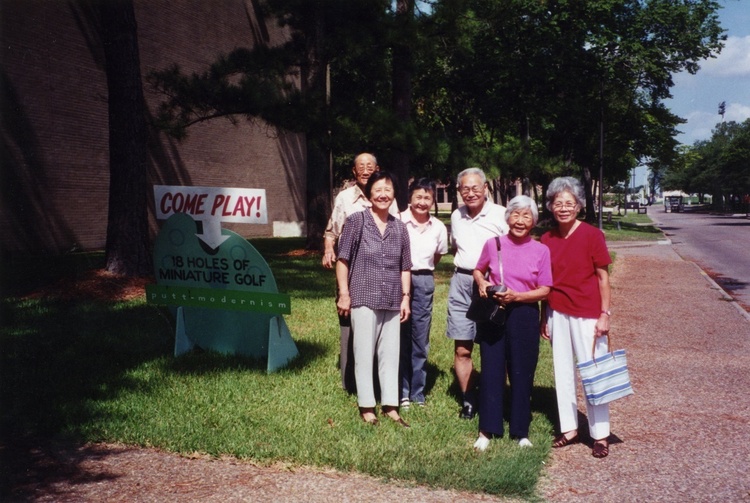 与至亲在休斯顿团聚(由左至右)三姐夫、张崇静、外甥女、王仁、三姐、堂妹(1998年美国)