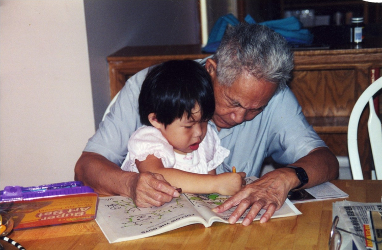 教外孙女浩浩认字(2000年9月于芝加哥)