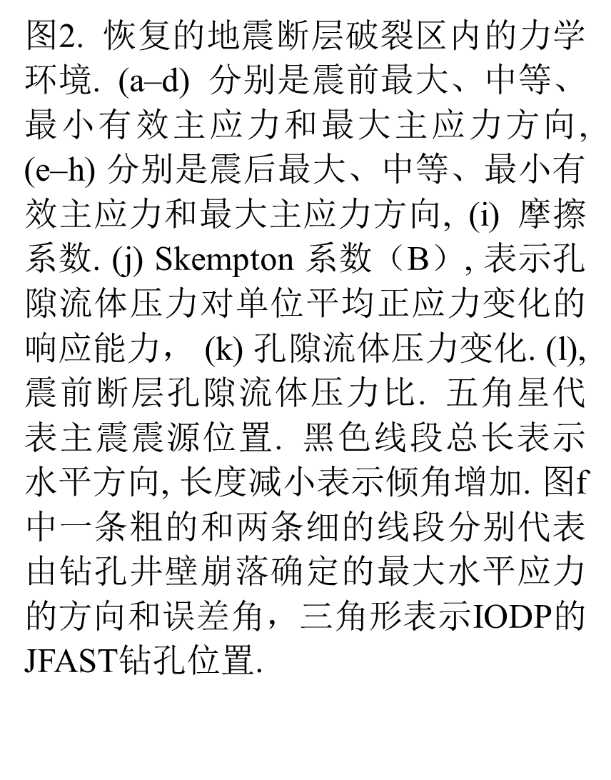 文章结果表明,恢复的断层综合力学环境不但能够提供同震的断层应力降(误差仅有0.1MPa)、还能够给出大洋钻探计划(IODP)震后得到的浅部断层处水平最大应力大小和方向以及前人得到的震前断层平均有效摩擦系数。这些结果表明,他们提出的利用断层同震应力变化恢复大地震断层力学环境的方法是可行的和有效的。